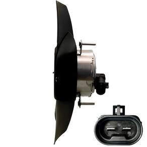 Eletroventilador sem defletor Sem resistência Conector de 2 pinos Hélice de 5 pás com 305mm Voltagem de 12v Sentido horário C/ar condicionado Motor c/102mm C/3 parafusos de fixação