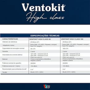 Ventokit High Class M160 Bivolt O High Class é o mais novo renovador de ar linha Ventokit, que alia design e desempenho em um só produto. O High Class conta com led indicador de funcionamento e baixo nível de ruído, além de instalação facilitada. Promove a ventilação mecânica do ambiente, evitando a formação de mofo, umidade e mau cheiro. Marca: WDB Ean: 7896500813638