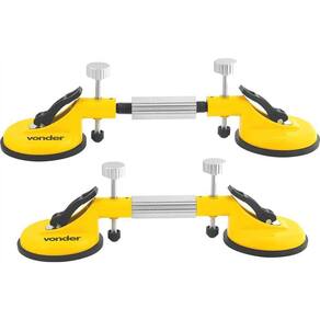 A capacidade de carga de cada ventosa é de 80 kgf e a capacidade de junção/posicionamento é de 100 kgf.