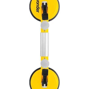 DESTAQUES DIFERENCIAIS 35.99.102.102 Ventosa dupla ajustável, VONDER.A capacidade de carga de cada ventosa é de 80 kgf e a capacidade de junção/posicionamento é de 100 kgf.APLICAÇÕES/DICAS DE USO Indicada para ajustar a altura/alinhamento e fazer a junção de pedras com superfícies lisas, como: cerâmica, granito, entre outros. Pode também ser usada para elevar e movimentar peças planas com superfície lisa, como: vidros, espelhos, cerâmicas, entre outras, desde que em distâncias curtas. Ao fazer elevação/movimentação, cerifique-se de que o manípulo de aperto esteja fechado para evitar o desgaste dos parafusos e possíveis acidentes.CARACTERÍSTICAS Tipo da ventosa Dupla ajustávelMaterial da ventosa BorrachaMaterial do suporte e alça da ventosa AlumínioDiâmetro de cada ventosa 120 mmCapacidade total de carga da ventosa 160 kgfMassa aproximada (peso) (kg) 1,14 kgTipo da Embalagem Blister1 Ventosa dupla. Acompanha: 1 conjunto de proteção dos parafusos.