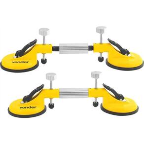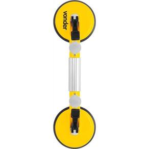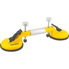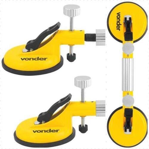 DESTAQUES DIFERENCIAIS 35.99.102.102 Ventosa dupla ajustável, VONDER.A capacidade de carga de cada ventosa é de 80 kgf e a capacidade de junção/posicionamento é de 100 kgf.APLICAÇÕES/DICAS DE USO Indicada para ajustar a altura/alinhamento e fazer a junção de pedras com superfícies lisas, como: cerâmica, granito, entre outros. Pode também ser usada para elevar e movimentar peças planas com superfície lisa, como: vidros, espelhos, cerâmicas, entre outras, desde que em distâncias curtas. Ao fazer elevação/movimentação, cerifique-se de que o manípulo de aperto esteja fechado para evitar o desgaste dos parafusos e possíveis acidentes.CARACTERÍSTICAS Tipo da ventosa Dupla ajustávelMaterial da ventosa BorrachaMaterial do suporte e alça da ventosa AlumínioDiâmetro de cada ventosa 120 mmCapacidade total de carga da ventosa 160 kgfMassa aproximada peso kg 1,14 kgTipo da Embalagem Blister1 Ventosa dupla. Acompanha: 1 conjunto de proteção dos parafusos.