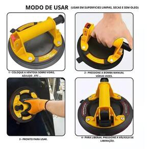 1 ventosa de sucção à vácuo. Informações importantes: Ventosa de excelente qualidade e durabilidade Estruturada em pvc e com borracha extremamente resistente Possui mecanismo de liberação Utilizada em vidros, mármores, granitos, porcelanatos, chapas de aço, vidros etc Certifique-se de que a superfície esteja limpa antes de começar. - informações técnicas: Material do produto: pvc e borracha Diâmetro: 200mm Sucção: método de sucção à vácuo Embalagem: tamanho 28x25x12cm Capacidade máxima carga horizontal: 75kg Capacidade máxima carga vertical: 160kg Embalagem: tamanho 28x25x24cm Peso:2.230g