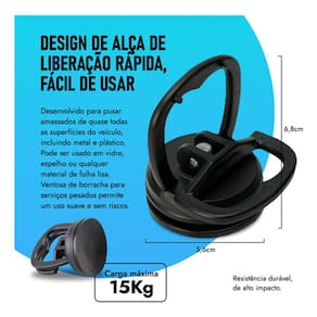 Antes de realizar a compra, analise o tamanho e a natureza do amassado no seu veículo. A Mini Ventosa é eficaz em amassados pequenos e superfícies lisas, sem dobras ou quinas.