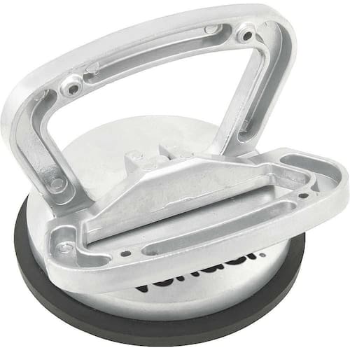 Material da ventosa: Borracha | Material do suporte e alça da ventosa: Alumínio | Capacidade total de carga da ventosa: 25 kgf | Diâmetro de cada ventosa: 116,0 mm | Tipo da ventosa: Simples | Massa aproximada (peso) (kg): 0.458 kg