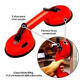 Com sucção de borracha e cilindro de metal, a capacidade de aspiração vertical da ventosa é de 80kg. A área de sucção possui diâmetro de 15cm, permitindo a fixação em vidros, mármores e chapas com facilidade.