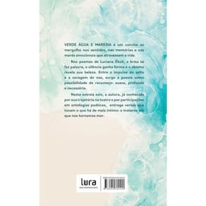 VERDE ÁGUA E MARESIA é um convite ao mergulho nos sentidos, nas memórias e nas marés emocionais que atravessam a vida. Nos poemas de Luciana Éboli, a brisa se faz palavra, o silêncio ganha forma e o abismo revela sua beleza. Entre o impulso do salto e a coragem do voo, surge a poesia como possibilidade de recomeço: suave, profunda e necessária. Nesta estreia solo, a autora, já conhecida por sua trajetória no teatro e por participações em antologias poéticas, entrega versos que tocam o que há de mais íntimo: o instante em que nos tornamos mar.