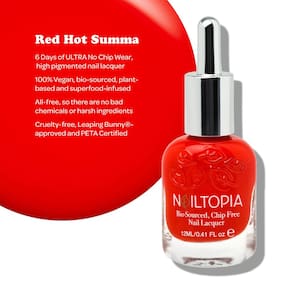 Nailtopia — Verniz vegetal sem lascas — Não tóxico, de origem biológica, de longa duração e fortalecedor — Red Hot Summa (vermelho com tons de laranja) — 0,41 onças — PARA UNHAS BONITAS E DURADOURAS — Cada frasco de verniz vegetal sem lascas da Nailtopia oferece um desempenho duradouro, sem lascas e incomparável, que certamente proporcionará uma manicure brilhante, saudável e linda pedicure - USE NOSSOS PRODUTOS JUNTOS PARA OBTER MELHORES RESULTADOS - Para obter os melhores resultados, comece aplicando a camada base da Nailtopia nas unhas limpas e secas. Em seguida, aplique 2 camadas do seu tom favorito. Complete o look com o incrível acabamento da Nailtopia - VEGANO E LIVRE DE CRUELDADE - Todos os vernizes Nailtopia são veganos e livres de crueldade e repletos de vitaminas, minerais e superalimentos para fortalecer as unhas clinicamente testados - INFUNDIDOS COM O MELHOR - Uma mistura exclusiva de frutas e vegetais reais que fornecem cálcio, vitamina B5, biotina, vitamina A e proteínas vegetais de origem natural para maior flexibilidade, rigidez e maior resistência unhas problemáticas — LIVRES DE INGREDIENTES NOCIVOS — Os vernizes para unhas Nailtopia são de origem biológica, com infusão de superalimentos e não... tóxicos, o que significa que eles estão livres de produtos químicos nocivos e ingredientes agressivos que podem prejudicar suas unhas