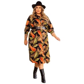 Deslumbre-se com a elegância e versatilidade deste vestido midi estampado incrível, com uma estampa de fundo preto sofisticada. Feito em tecido de viscose de qualidade, oferece conforto incomparável. Com mangas 3/4 e um corte que se adapta perfeitamente ao corpo, este vestido é a escolha ideal para ocasiões sociais ou casuais. Seja um evento especial ou uma saída descontraída com amigos, este vestido é a adição perfeita ao seu guarda-roupa. Seja notada com esta nova peça que combina estilo e modernidade.