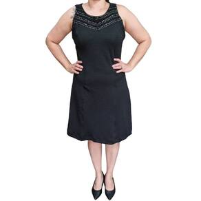 Ideal para eventos noturnos, jantares ou festas, o vestido une o clássico preto com acabamentos que fazem a diferença.