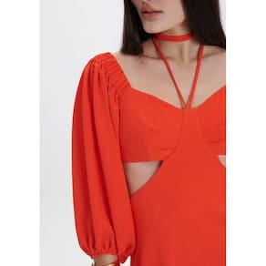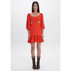 Eleve seu estilo com o vestido curto de babados e cut out, o toque estiloso perfeito. As mangas longas e o caimento fluido trazem elegância, enquanto o detalhe de amarração adiciona um toque moderno.
