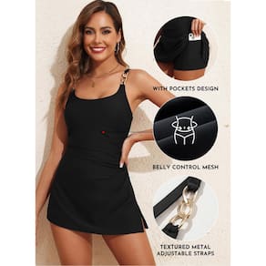 Aleumdr Maiô feminino, vestido de natação, peça única, tanquíni com saia, maiô feminino, modesto, roupa de banho 2024, preto, médio - Com bolsos: este vestido de banho possui bolsos embutidos para facilitar o armazenamento de itens essenciais. Com um painel de malha de controle de barriga, molda sua silhueta lindamente, oferecendo estilo e conforto para todas as suas atividades na piscina - Traje de banho resistente ao cloro: Feito de 82% poliamida e 18% elastano, este vestido de banho oferece um ajuste confortável e durabilidade. Seu tecido de secagem rápida mantém a forma e a elasticidade, garantindo que você esteja na moda. - Design do vestido de banho: possui tiras de corrente de metal e um decote quadrado. Inclui shorts e bolsos embutidos para maior comodidade, juntamente com um painel de malha de controle de barriga. As alças ajustáveis e o sutiã removível oferecem excelente suporte - Ocasiões: Este maiô feminino é perfeito para piscinas, festas na praia, atividades aquáticas, férias de verão e muito mais. Também é um presente maravilhoso para sua namorada, mãe, parceira ou irmã - Tamanho: oferecemos uma variedade de tamanhos dos EUA para você escolher: P (EUA 4-6), M (EUA 8-10), G (EUA 12-14), GG (EUA 16), XXL (EUA 18). Recomenda-se consultar a tabela de tamanhos para uma seleção mais precisa