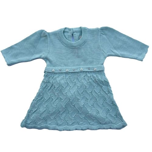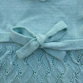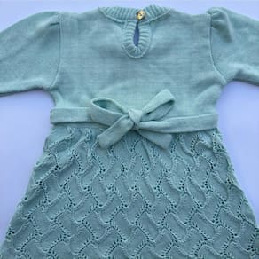 Vestido de tricô com cinto removível bordado e rico em texturas, nosso modelo Serena chegou para arrancar suspiros da mamãe, dispónivel na cor verde água ele é perfeito para acompanhar o baby no passeio na casa da vovó, visita ao pediatra, passeio em família ou em qualquer outro lugar que você prefira estar.
