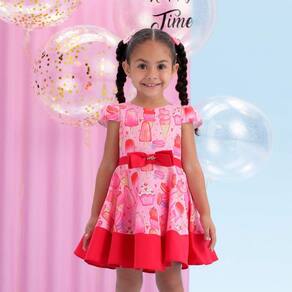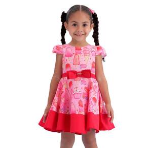 Vestidos na temática perfeita doces, sorvete, para todas as ocasiões: festas, aniversários e passeios.Vestido nas cores rosa e vermelho em microfibra acetinada, com decote redondo, manguinhas curtas sobre o ombro, detalhe da faixa em vermelho com laço duplo, saia bem rodadinha, modelagem godê, barrado em vermelho.Forrado em failete por dentro.Perfeito para todos os momentos.100% PoliésterInformações: - Não Deixar de molho. - Lavar do avesso.- Não esfregar sobre o aplique e ou bordado.- Secar em varal.- Não passar ferro sobre o aplique e ou bordado.- Retirar os acessórios para lavar.