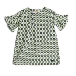 Um lindo vestidinho 100% algodão. Na frente, lado direito tem 3 delicados botões, o que facilita bastante na hora de vestir. As manguinhas são soltas, tipo sino. Um charminho!