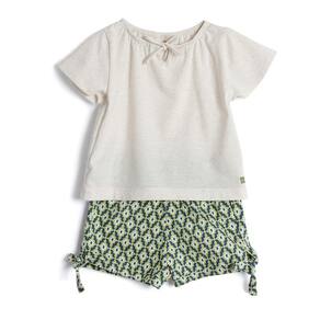 A blusinha tem manguinha curta, lacinho na gola e elástico para ajudar na hora de trocar a princesinha. O shortinho tem elástico na cintura para facilitar a vida das mamães e papais e lacinho nas perninhas.