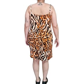 Vestido Feminino Rosa Milliossi Onça com Alças Finas – Plus Size