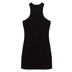 Vestido feminino que une elegância e modernidade em uma peça única. Confeccionado em malha Holy, conhecida por sua textura diferenciada, este vestido de cor lisa e modelagem justa destaca a silhueta com sutileza. A ausência de mangas na modelagem regata confere um toque contemporâneo, tornando-o uma escolha sofisticada para diversas ocasiões.