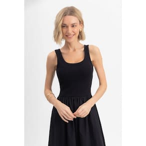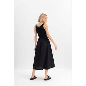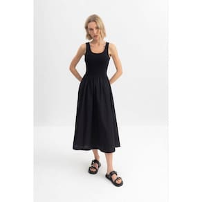 Encante-se com o vestido midi feminino Essendi, uma peça que une estilo e conforto. Confeccionado em ribana canelada, ele apresenta mangas estilo regata e um delicado decote em U, que valoriza a silhueta. As pregas na cintura criam um efeito rodado, perfeito para qualquer ocasião. Ideal para compor looks elegantes ou casuais, combine com sandálias ou tênis para um visual despojado. Sinta-se confiante e radiante com essa escolha única! Marca: Não Informado
