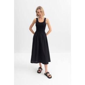 Encante-se com o vestido midi feminino Essendi, uma peça que une estilo e conforto. Confeccionado em ribana canelada, ele apresenta mangas estilo regata e um delicado decote em U, que valoriza a silhueta. As pregas na cintura criam um efeito rodado, perfeito para qualquer ocasião. Ideal para compor looks elegantes ou casuais, combine com sandálias ou tênis para um visual despojado. Sinta-se confiante e radiante com essa escolha única! Marca: Não Informado