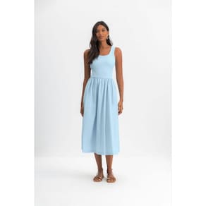 Vestido feminino midi em ribana Essendi - G - Azul Claro - XXG