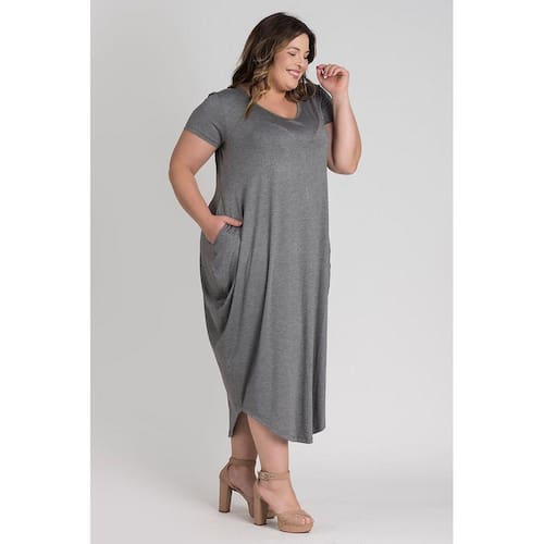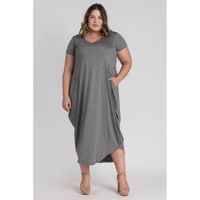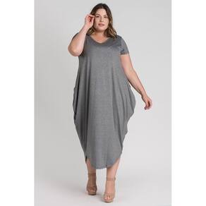Vestido feminino plus size elaborado em visco. Possui boa elasticidade, peça leve, macia, com bolsos nas laterais, barra em formato oval e decote "V". Peça cheia de estilo e conforto. Monte look arrasadores estando bem vestida!