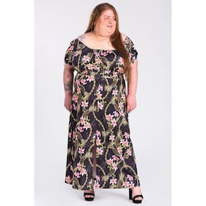 Vestido feminino plus size elaborado em malha confort. Peça com boa elasticidade, leve, macia ideal para os dias de verão. Possui estampas diferenciadas, detalhe em costura que na parte do busto e na parte da frente abaixo, que finaliza com abertura/fenda proporscionando aquele diferencial a peça e ao seu look.