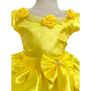 Deslumbre-se com este maravilhoso Vestido Infantil Princesa Amarelo, confeccionado em cetim de alta qualidade. Com um toque sofisticado e delicado, o vestido traz flores adoráveis tanto no ombro quanto na saia, criando um visual romântico e encantador para a sua pequena.