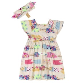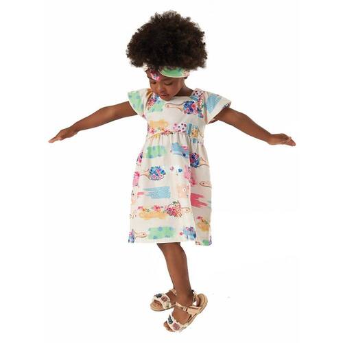 Vestido Infantil Manga Curta com Faixa em Tecido Tricoline Estampado Gelo Up Baby Ref. 42756