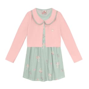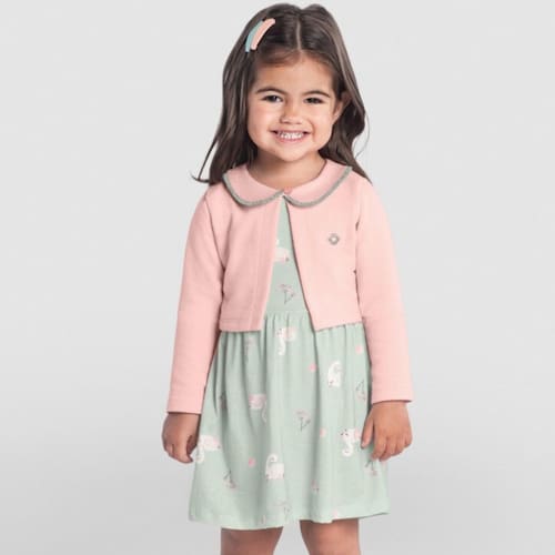 Encante sua pequena com o conjunto infantil da Brandili. Confeccionado em malha leve e confortável, o vestido é decorado com uma estampa lúdica de cisne branco, acompanhado de um recorte na cintura com pregas que proporciona um efeito rodado adorável. O bolero, com sua gola delicadamente detalhada, completa o look com charme e sofisticação. Ideal para festas e passeios, este conjunto garante estilo e liberdade de movimento. Combine com sapatilhas e deixe sua menina brilhar!