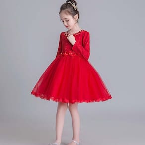 Vestido Infantil Menina Aniversário Festas Casamento C Tiara - Vermelho - 5