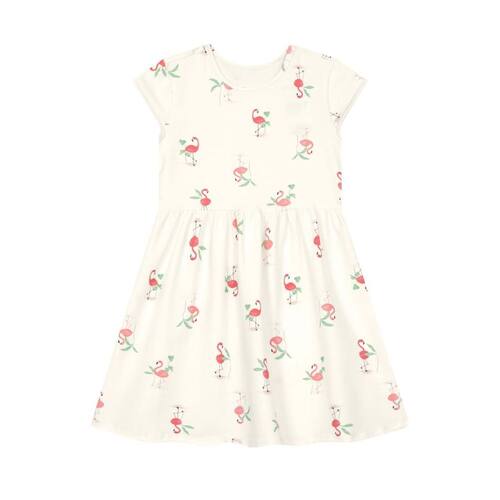 Delicado e cheio de estilo, o vestido infantil da Brandili traz todo o charme que as meninas adoram. Produzido em cotton macio, é leve e confortável para acompanhar cada momento do dia. A estampa colorida de flamingos adiciona um toque divertido ao visual, enquanto o recorte na cintura com pregas garante movimento e um caimento rodado encantador. Com mangas curtas e gola redonda, é fresquinho e fácil de combinar com sandálias ou sapatilhas. Um look versátil para brincar, passear e viver ocasiões especiais com alegria.