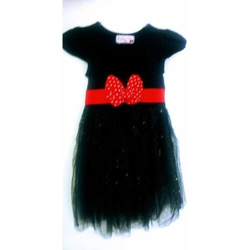 Vestido Infantil Menina Disney Minnie Preto Gliter - Preto - 3