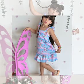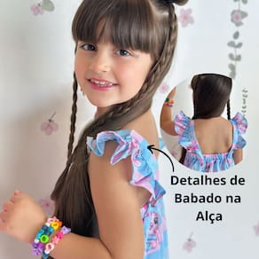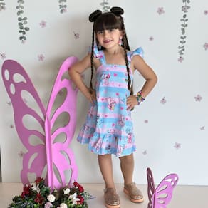 Vestido Infantil Meninas Stitch Com Alças de Babadinhos Luxo - Azul Claro - 2 anos
