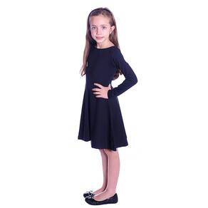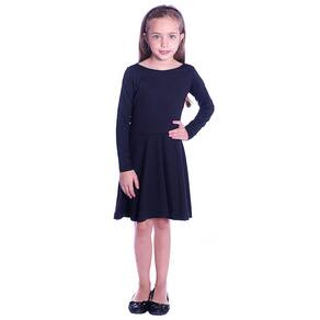 Vestido infantil manga longa decote canoa, preto, cor clássica, em tecido LIGHT CO2 biodegradável (fio AMNI SOUL ECO, o primeiro fio de nylon biodegradável do mundo), com fator de proteção solar 50FPS+ UVA e UVB.