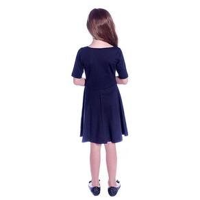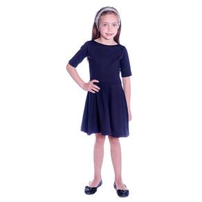Vestido infantil meia manga decote canoa, preto, cor clássica, em tecido LIGHT CO2 biodegradável (fio AMNI SOUL ECO, o primeiro fio de nylon biodegradável do mundo), com fator de proteção solar 50FPS+ UVA e UVB.