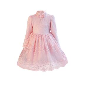 Vestido Infantil Renda Rosa Festas Manga Longa