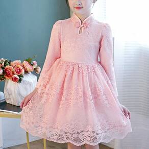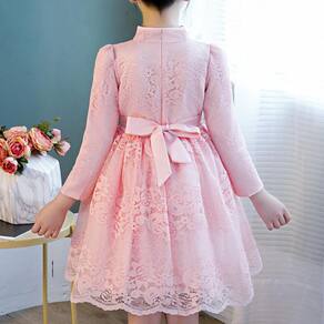 O vestido infantil de renda rosa é a escolha perfeita para as festas devido à sua elegância e charme. Com mangas longas, a peça oferece conforto e estilo para as pequenas fashionistas.