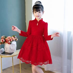 O vestido infantil de renda vermelho é a escolha perfeita para as festas devido à sua elegância e charme. Com mangas longas, a peça oferece conforto e estilo para as pequenas fashionistas.