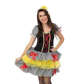 Vestido Junino Feminino Caipira Quadriculado Preto com Arco