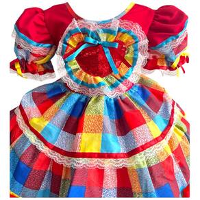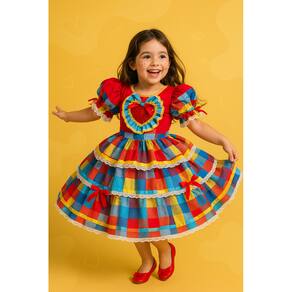 Confeccionado com materiais de qualidade, o vestido possui cores vivas, babados, laços e detalhes tradicionais que tornam a peça ainda mais encantadora. Ideal para quadrilhas, festas escolares, arraiais e eventos temáticos.