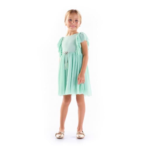 Vestido Kiki Xodó Manga Curta Com Tule Ref: 2100150 1/4 Menina.