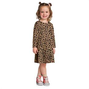 Vestido Kyly Infantil Menina Manga Longa Animal Print Camurça - Charme e estilo para sua pequena com este lindo vestido de animal print da Kyly!