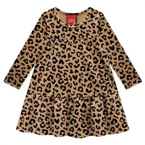 Vestido Kyly Infantil Menina Manga Longa Animal Print Camurça
