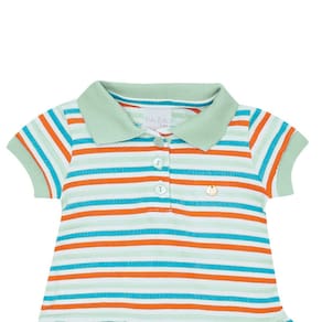 Despojado e com um toque de fofura para as babys fashionistas! O vestido perfeito para sua pequena se manter fresquinha nos dias mais quentes da estação. Esta peça é confeccionada em malha latex listrado na cor tiffany e uma placa de metal com a identificação da Pulla Bulla no peito. Este é o look ideal para aproveitar o dia de calor com sua pequena.\n