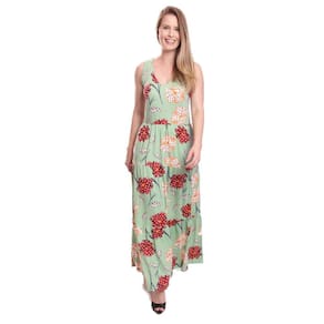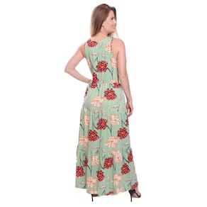 Vestido longo feminino em camadas com bolsos.