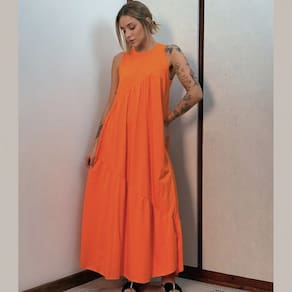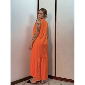 Vestido Longo Feminino malha algodão Aveloz Laranja - Laranja - GG