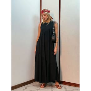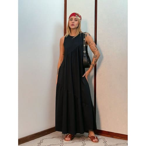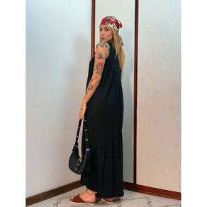 Vestido Longo Feminino malha algodão Aveloz Preto - Preto - GG