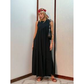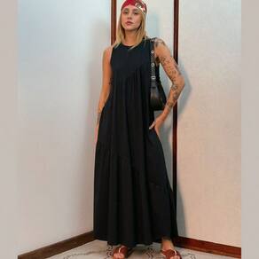 Vestido Longo Feminino malha algodão Aveloz Preto - Preto - G