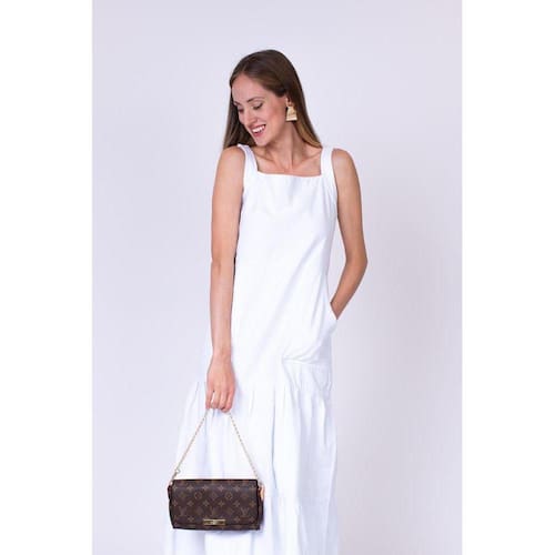 Vestido Longo Sarja, possui bolso lateral na frente, zíper nas costas, é mais justo na parte de cima e soltinho na parte de baixo, possui alça grossa. Sem lycra. Este é um vestido que traz charme e é fácil de usar em muitas ocasiões. O contraste do branco com o zíper preto é um destaque interessante o que facilita também na escolha dos acessórios. Observação: a cor das peças nas fotos pode variar ligeiramente de acordo com o seu monitor ou telefone e por serem tiradas em estúdio ou com luz natural. Código do produto: HBNUH9 (INTERNO) Preço de venda: 352,00 | 320,00 | 272,00 Marca: Khalli