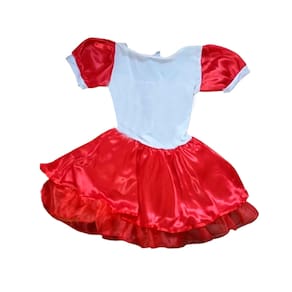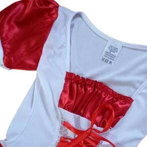 2 – 62cm (busto) / 66cm (cintura) / 24cm (altura do corpo) / 25cm (altura da saia) / 11cm (comprimento da manga)